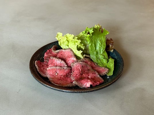 やわらかく仕上げた和牛の特製ローストビーフ。旨味を引き立てるガーリックソースをかけてお召し上がりください。