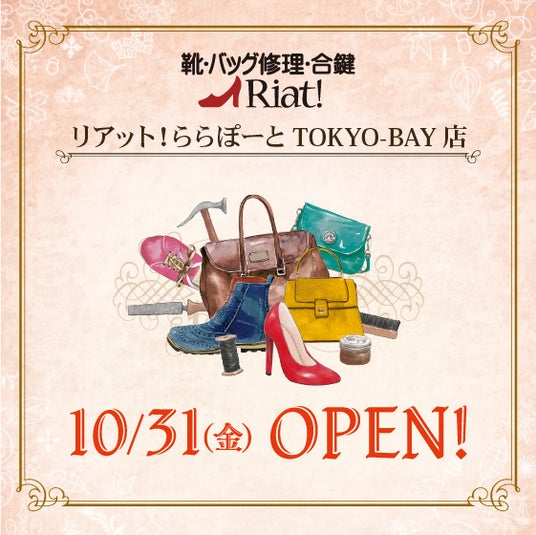 靴・バッグ修理・合鍵のリアット!ららぽーとTOKYO-BAY店 千葉県船橋市に10月31日(金)オープン
