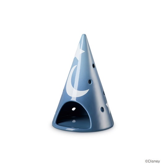 ディズニー映画『ファンタジア』に登場する、魔法使いミッキーマウスのシンボル"ソーサラーハット"をモチーフにしたキャンドルスタンド。深いブルーに星や三日月のモチーフがあしらわれたデザインは、まるで魔法のような幻想的な雰囲気を演出します。キャンドルの灯りがゆらめくたびに、ファンタジアの世界が静かに広がるような感覚に包まれます。インテリアのアクセントや特別な夜の演出にぴったりの、遊び心と上品さを兼ね備えた、インテリアに映えるアイテムです。