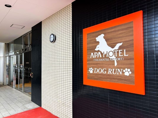 アパホテル<高松空港>は、高松空港から車で約3分※に位置し、館内にはサウナ付きの天然温泉展望大浴殿「さぬきの湯」や湯上がりレストルーム、会議室、ミニコンビニを完備。標準的なシングル、ダブル、ツインに加え、トリプル、フォース、最大5名様まで利用可能な和洋室など多様な客室タイプを用意しており、ビジネス、観光、イベント、インバウンド(訪日外国人)など幅広く利用されている。近年、旅行市場においてペットツーリズムへの関心が高まる中、アパホテルとしても新たな宿泊需要を創出するため、愛犬と一緒に泊まれるコンテナ型客室「コテージルーム」と全天候型の屋内ドッグランを新設した。