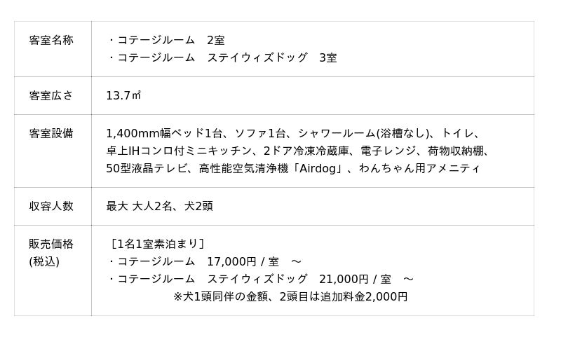 1.愛犬と宿泊可能で長期滞在にも便利なミニキッチン付きのコンテナ型客室「コテージルーム」