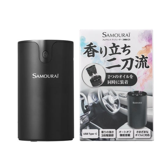 電気式の噴霧タイプで、香水の香りをしっかりと空間に拡散。車内でもお部屋でも、サムライの香りを本格的に楽しめます。