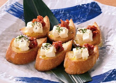 クリームチーズの西京漬けとチャンジャのブルスケッタ 648円(税込713円)