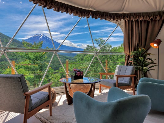 海外のお客様に人気の高い山梨エリアにある、全室から富士山の絶景が楽しめる「Mt.Shakushi Gateway Camp」。さらに、貸切露天風呂やプライベートサウナでは、富士山を眺めながら、心と体を癒すひとときをお過ごしいただけます。多種多様なBBQもご用意。壮大な富士山とともに過ごす絶景グランピング体験を。