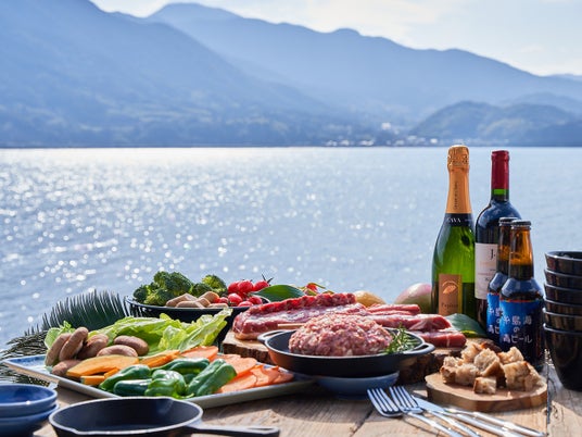 今回の展示会でも注目を集めた圧巻のオーシャンビューを背景に、厳選された上質な黒毛和牛のBBQを味わう。