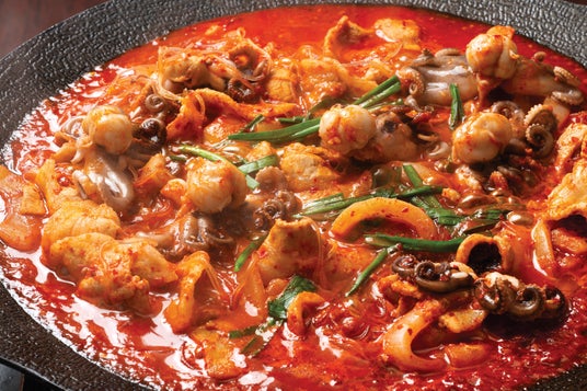 本格的な辛さが際立つ、イイダコ×豚肉の相性抜群コンビ。弾む食感とジューシーな旨みが一体となり、濃厚なコクがクセになる!