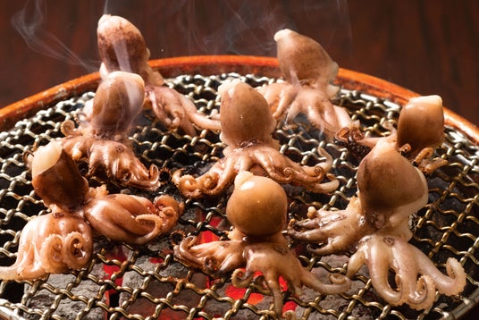 七輪の上で踊るように焼き上がる、イイダコのライブ感。プリッと弾む食感と、牛角自慢のつけダレで旨みが止まらない!