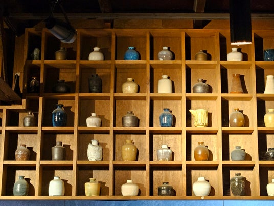 徳利からお酒を注ぐ音から「ととと」と名付けられたため、たくさんの徳利が並ぶ。