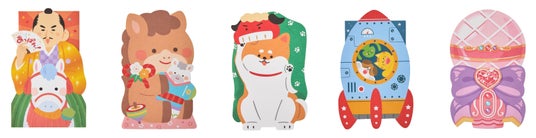 12の干支が入った正方形タイプや、裏にも楽しいデザインが入ったタイプを展開しています。