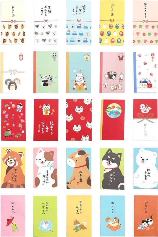 イオンリテールは11月1日(土)、2026年新デザインの「トップバリュ ポチ袋」の販売を開始します。従来のお札を三つ折りにして入れる「五型タイプ」や、お札を折らずに入れられる「万型」はもちろん、お札を2つ折りにしてすっきりと入れられる「正方形コンパクトタイプ」や、形が楽しい「ダイカットタイプ」まで バリエーション豊かなラインアップで展開します。ベーシックで可愛らしいデザインのほか、今年は人気イラストレーター4名の方とコラボしたイオン限定デザインポチ袋「クリエーターコラボデザイン ポチ袋」も新発売します。