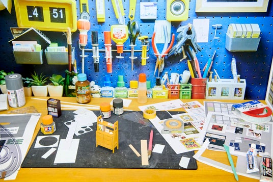 作業効率を最大限に高めるため、使う道具は全て手の届く場所に配置されたMozuの作業机を再現。