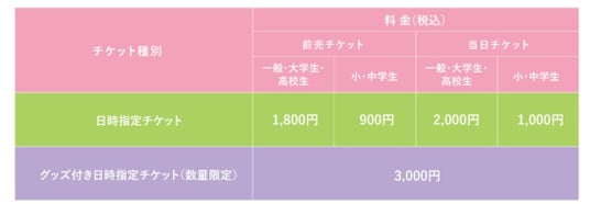 ※チケットはいずれも完売の場合がございます。なお、前売時に完売した場合は当日のチケットの販売はございません。