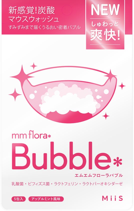 「mm flora*Bubble」は、飲み込める設計と炭酸泡の爽快感で、いつでもどこでもお口を清潔に保てる新発想のケアを実現。