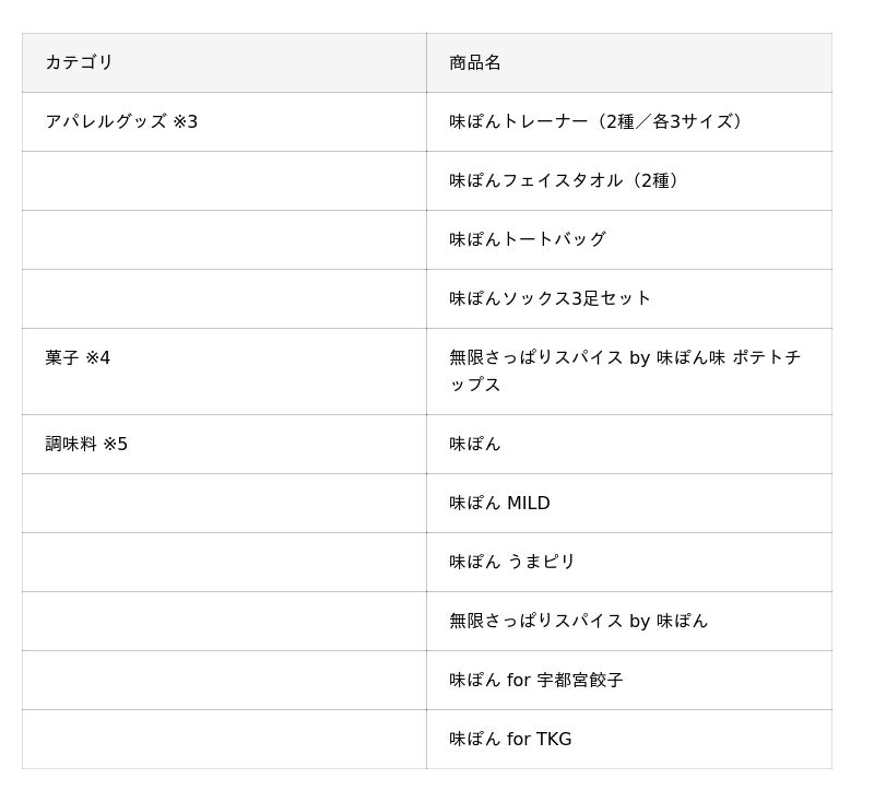 グッズは、日常使いしやすく、お家でも外出先でも楽しめるラインアップです。温かみのある可愛いイラストや、味ぽんカラーラインをあしらったシンプルなデザイン、そして味ぽんラベルを活かしたリアルな表現など、さまざまな"味ぽんらしさ"をお楽しみいただけます。ぜひこの機会に店頭へお立ち寄りいただき、味ぽんの世界を感じてください。「味ぽん」はこれからも、日々の暮らしが"ぽん!"とうれしくなるような商品・企画をお届けしてまいります。ぜひご注目ください。