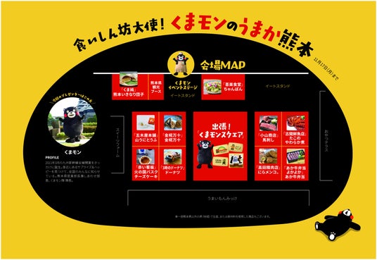 食祭テラスと連動し、雄大な自然と豊かな水が育んだ素材を使った熊本の人気店11事業者が"くまもとモン"を展開。人気の観光スポット「くまモンスクエア」も登場するなど、お店を挙げて熊本の魅力を発信いたします。美味しいグルメと、くまモンで賑わう会場の様子をぜひご取材ください!