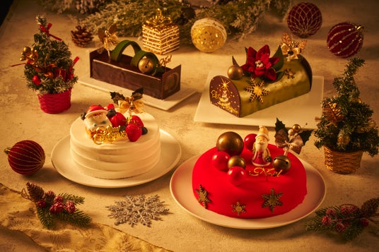 国産いちごと北海道産生クリームが織りなす至福の味わいをお楽しみいただける「プレミアムショートケーキ」、フランス産マロンとヴァローナ社のチョコレートを使用した「チェスナッツ・ロワイヤル」、ラズベリーとオレンジムース、黒糖スパイスクリームが香る「クリムゾン・クリスマス」を販売します。