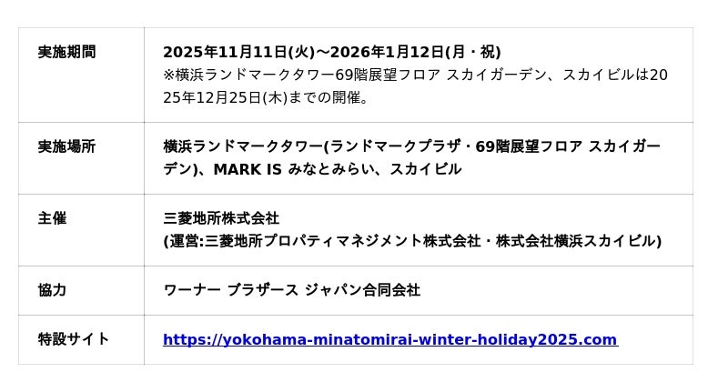 【特設サイト】 https://yokohama-minatomirai-winter-holiday2025.com