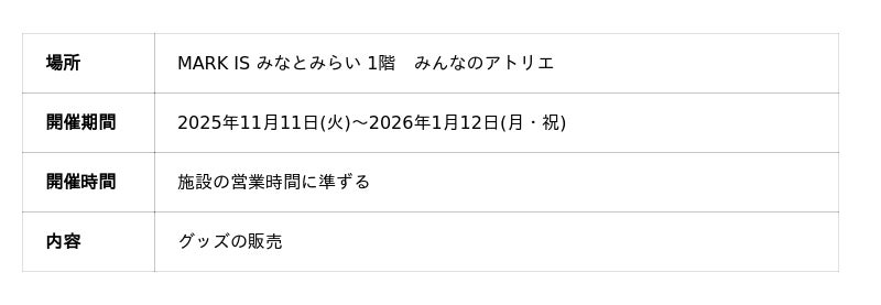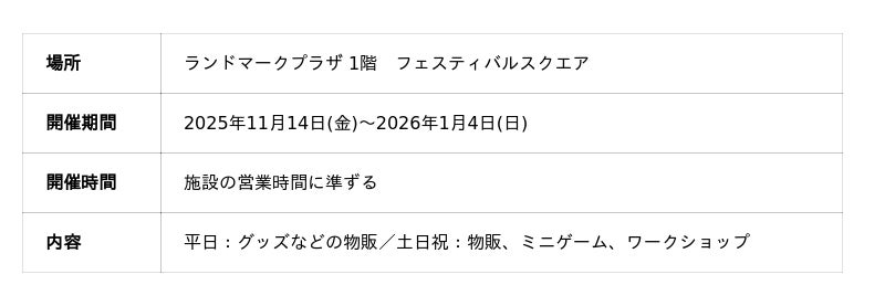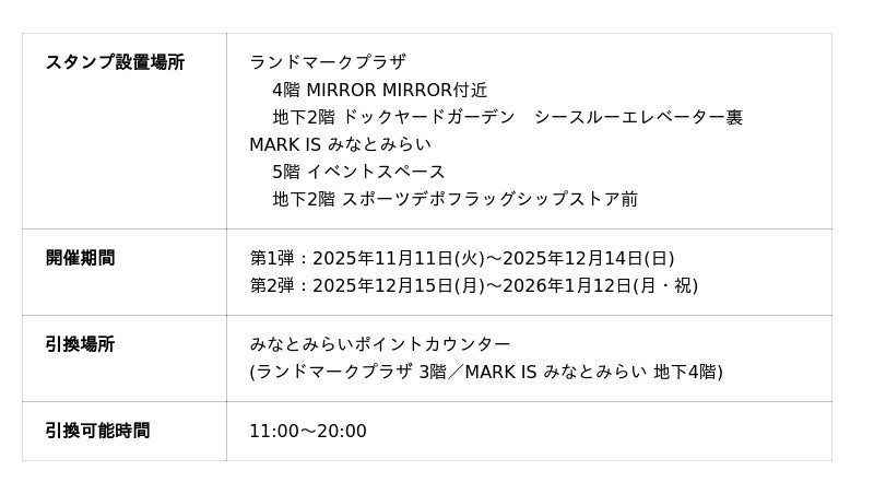 詳細は特設サイトをご確認ください。(特設サイト:https://yokohama-minatomirai-winter-holiday2025.com)