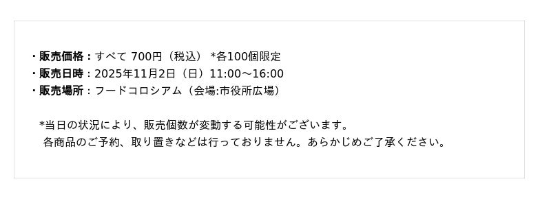 また、同時開催されるイベント「みんなの川崎祭」フードコロシアム(会場:市役所広場)にて、川崎市の国内友好都市とコラボレーションした限定メニュー3種を販売。当社は、「食」を通じた地域連携と交流を促進し、イベント全体の価値向上に貢献いたします。