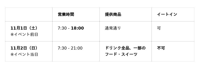 11月1日(土)は、翌日の会場設営のため18:00までの営業となります。