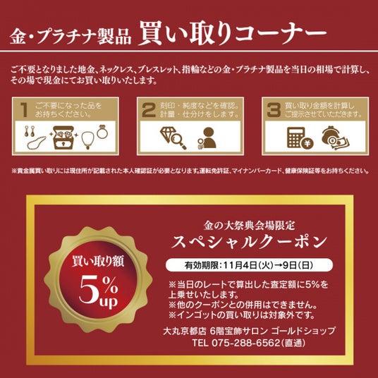 開催場所:大丸京都店 6階 イベントホール<金の大祭典>特設会場