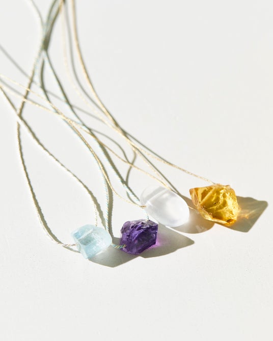 お好きな原石を選んで、お好きな形に磨いてペンダントをつくるワークショップ。磨いた宝石に合わせて京都の絹製の組紐をお付けします。