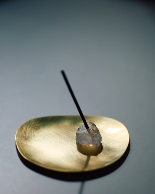 お好きな水晶の結晶を選んで、お好きな形に磨いてお香立てをつくるワークショ ップ。ジュエリートレイとしてもお使いいただける真鍮製のオリジナル皿をお付けします。
