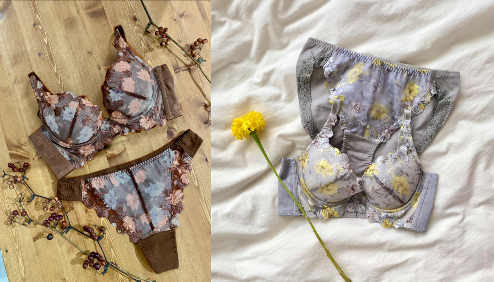 立体的な刺繍の凹凸に鮮やかな色彩が加わった下着は、着用するたびにポジティブな気持ちをもたらしてくれます。光の加減や見る角度によって表情が変わる点も、従来の刺繍レースにはない特徴です。