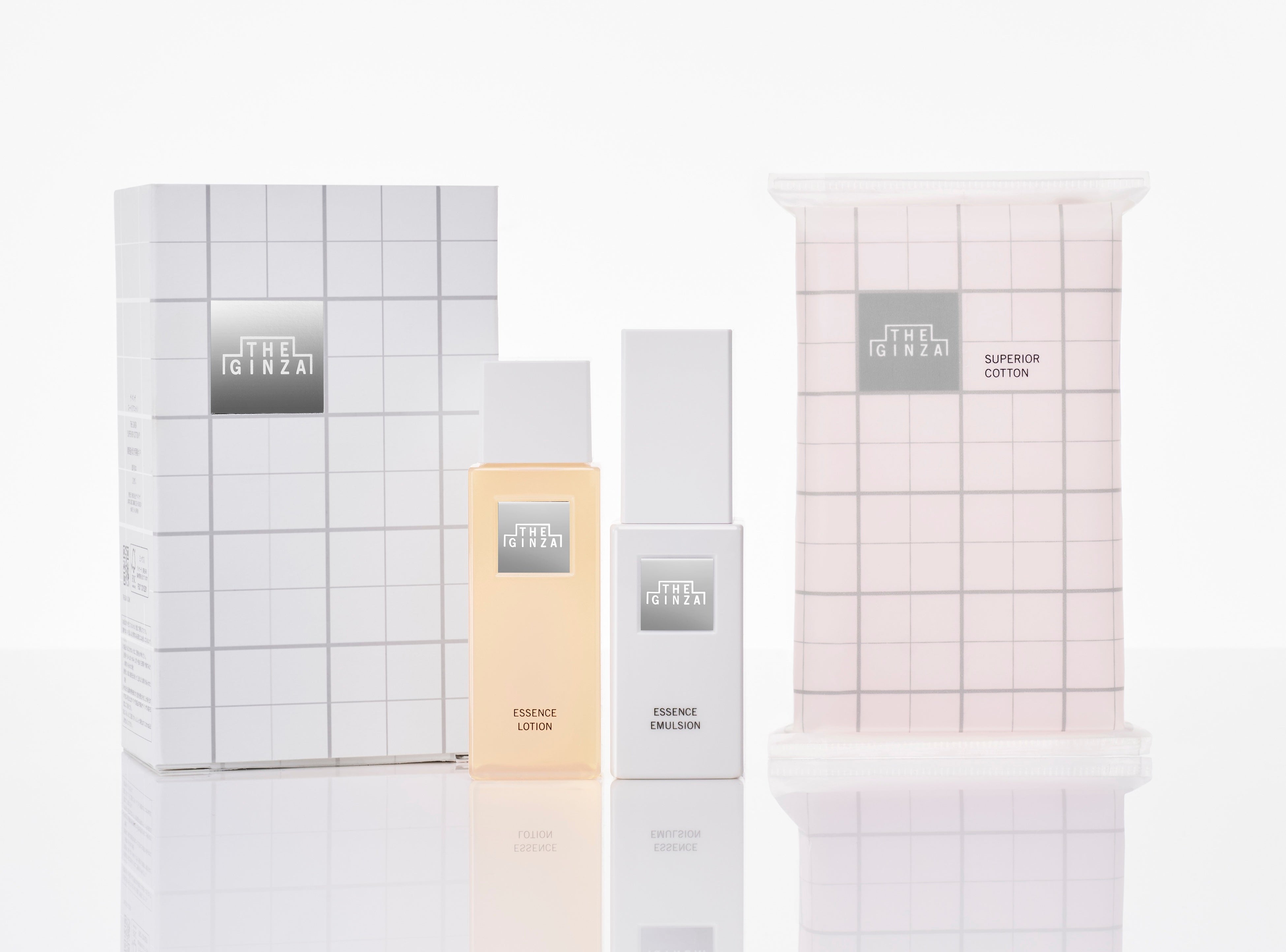 ザ・ギンザ エッセンスローション(50mL)<化粧水>、ザ・ギンザ エッセンスエマルジョン(40mL)<乳液>、ザ・ギンザ スーペリアコットン(12枚)<化粧用具>