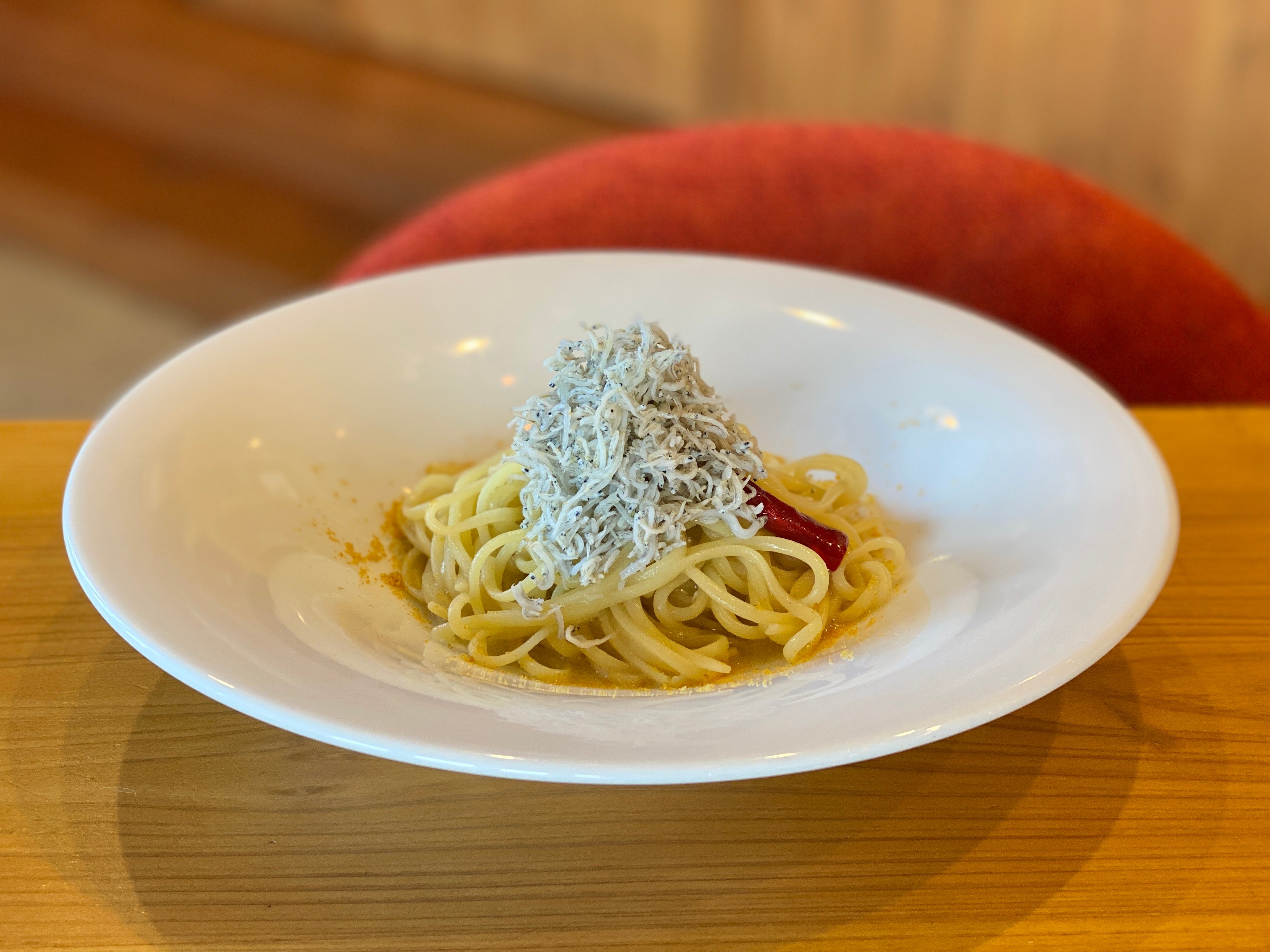 Espresso D Works 鹿嶋常陸乃国しらすのペペロンチーノ ¥1,320(税込)