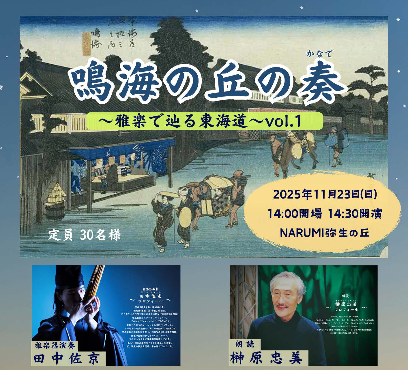 ◆鳴海の丘の奏~雅楽で辿る東海道Vol.1~ 11/23(日)14:30開演 会場:NARUMI弥生の丘