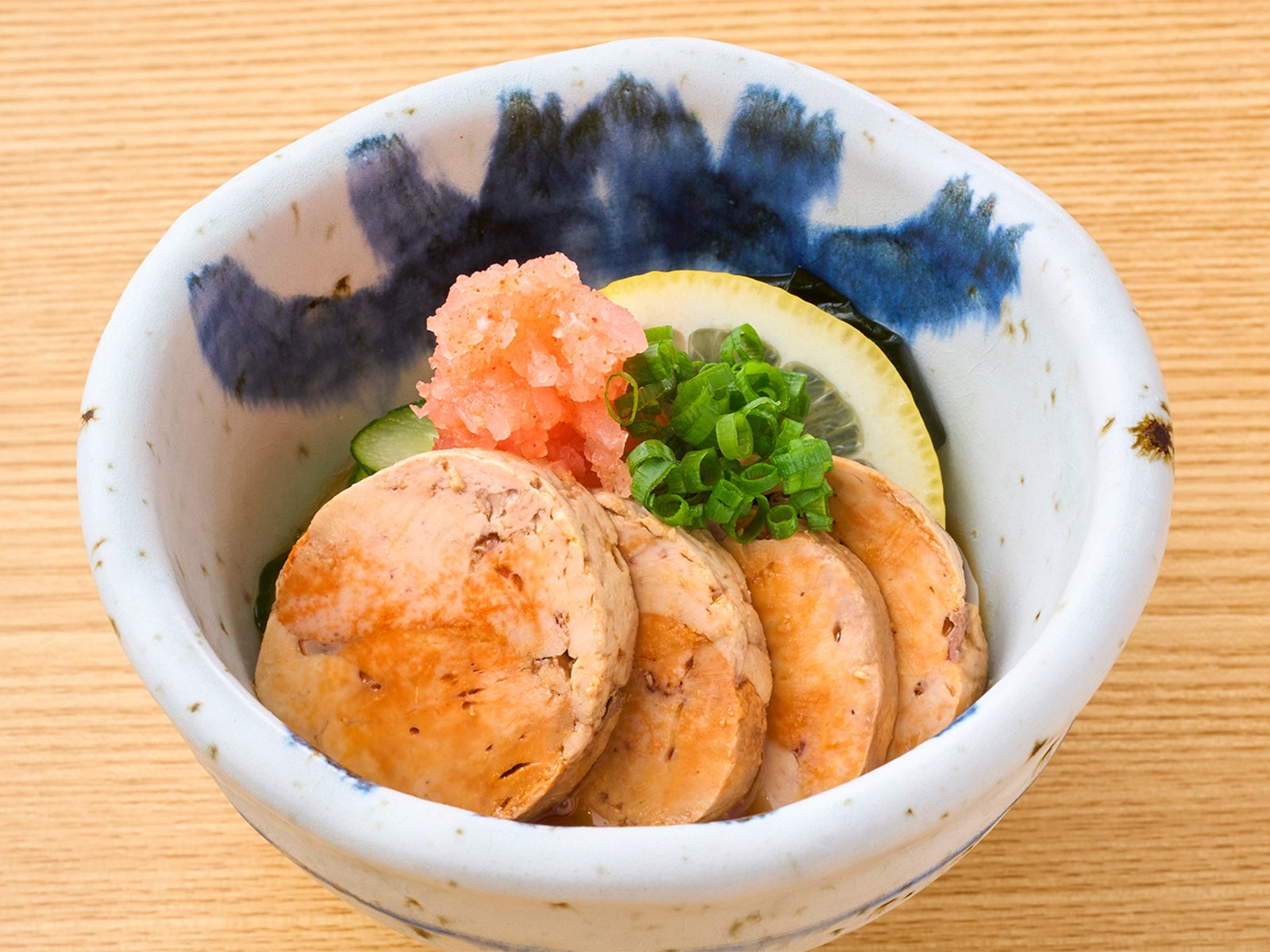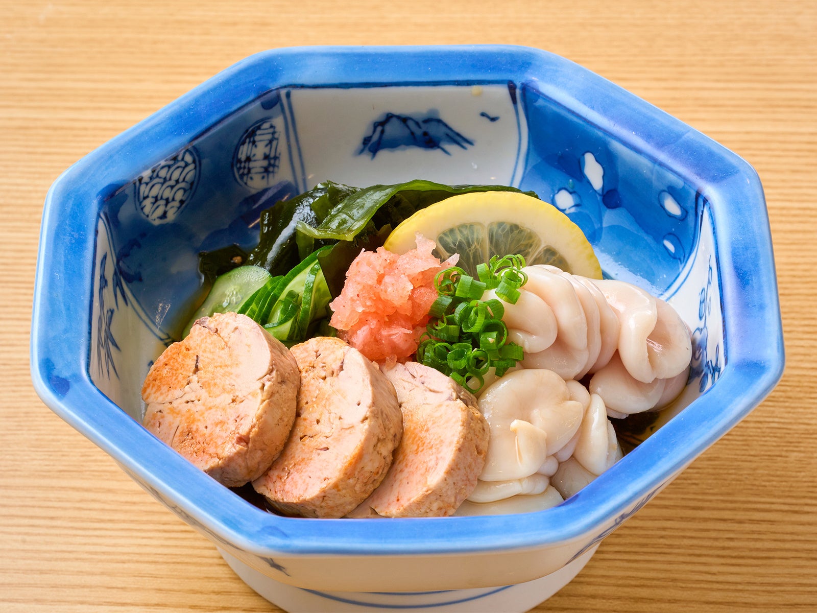 旨みが濃厚なあん肝と白子をぽん酢でさっぱりと【あん肝と白子の合盛り】599円(税込659円)