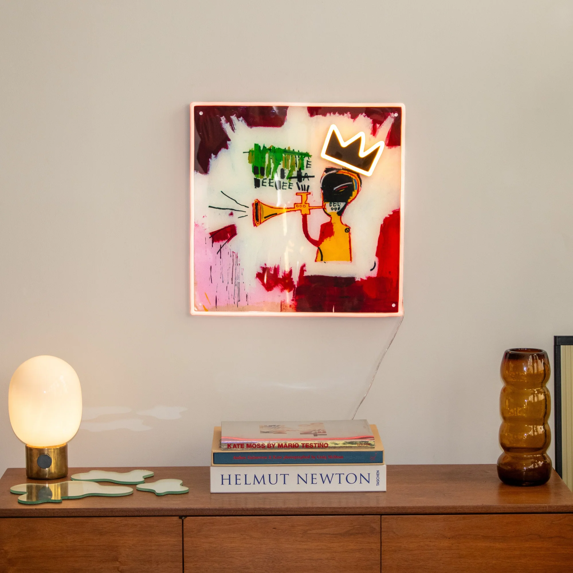 シンプルさと挑発が融合したこのネオンサインは、単なるインテリアではなく、キース・ヘリングが受け継いできた「常識を超える」ことの証です。