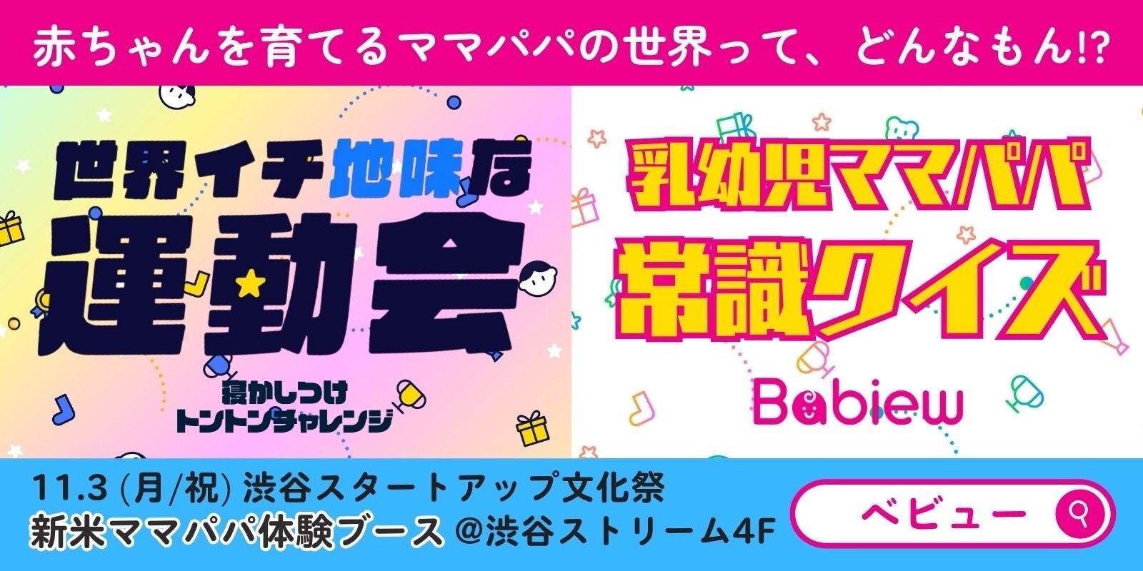 11/3(月・祝)渋谷に「ママ・パパ体験ブース」が登場! ベビーグッズの口コミサイトBabiewが渋谷スタートアップ文化祭に登場