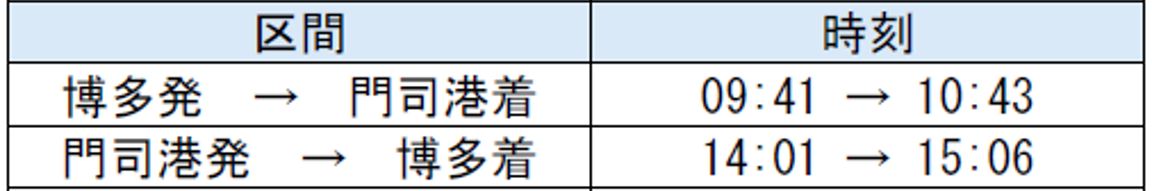 ※小倉駅で途中下車する場合、別途小倉~門司港間の運賃が必要です。