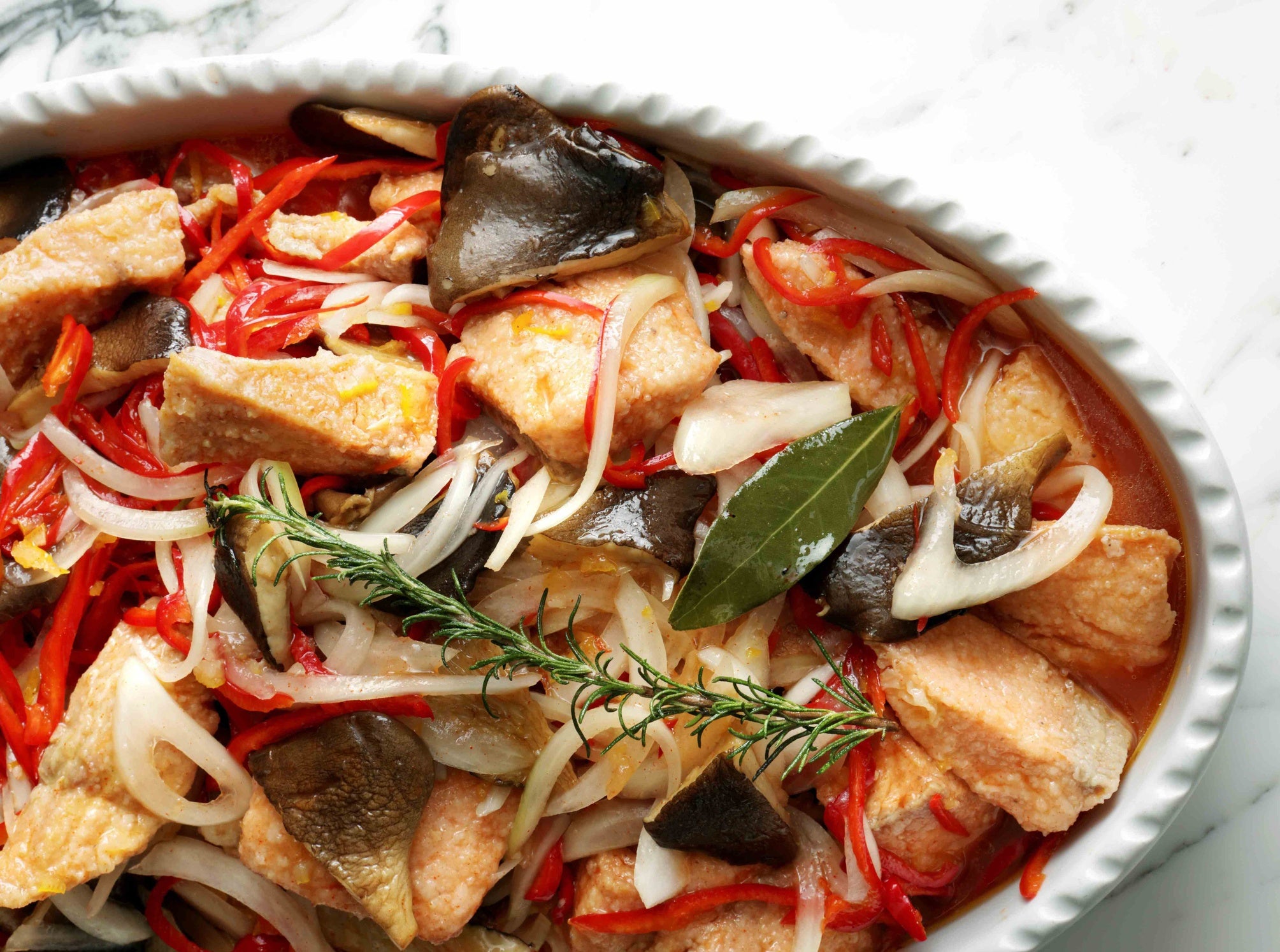 *クックブックには「サーモンとアワビ茸のエスカベッシュ」にて掲載しております。