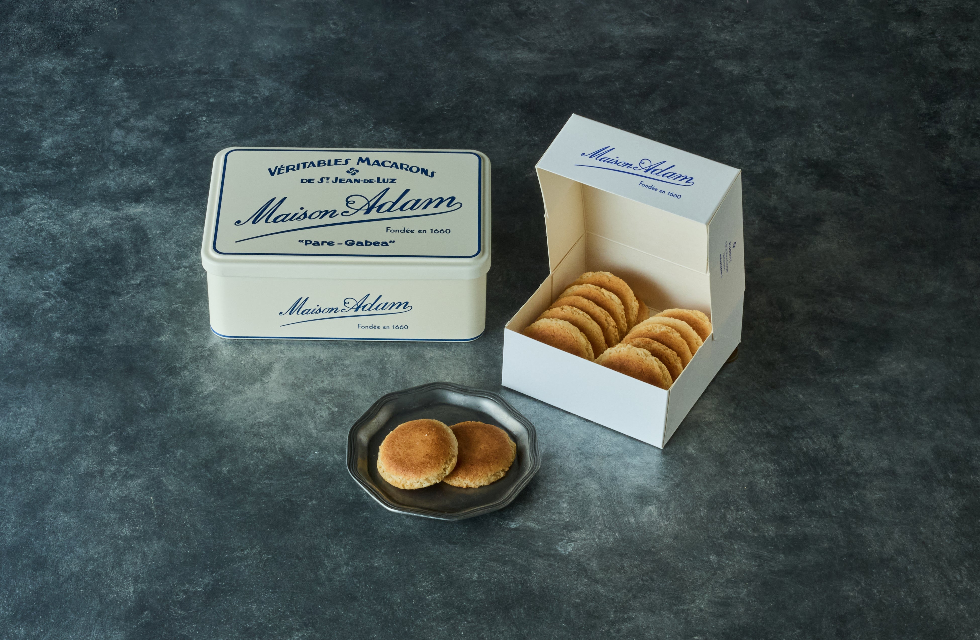 Maison adam マカロンBOX:¥3,800(税込¥4,104) 缶:¥7,500(税込¥8,100)