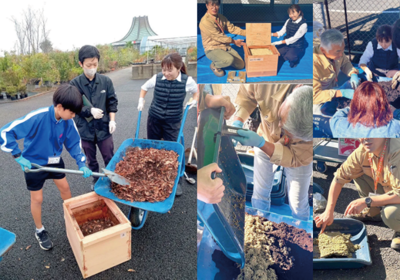 参加者は、オリーブオイルの搾りかすやコーヒーかすなど、道の駅 みのりの郷東金で排出される廃棄予定の素材を使用してたい肥作りを体験します。
