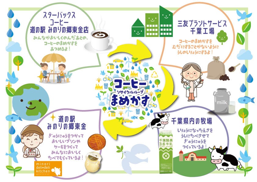 道の駅 みのりの郷東金は2024年より『循環型社会の実現に向けた取り組み』として、スターバックス コーヒー 道の駅みのりの郷東金店、三友プラントサービス(株)と連携し、スターバックスの店舗から出たコーヒーかすや、落ち葉、米ぬか、地元の木材加工で出る木くずや東金産オリーブのポマス(オリーブオイルの搾りかす)などを原料に、たい肥化の実証実験『たい肥コミュニケーション』プロジェクトを地域の皆様と共に実施しています。