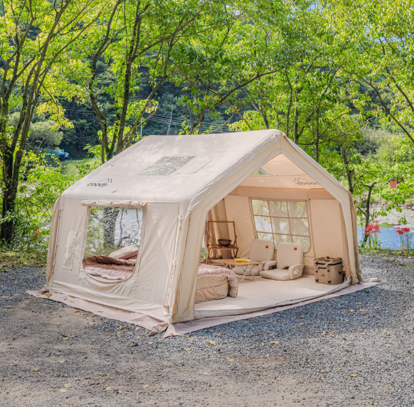 今回、coodyは防災秋まつりへの初出展として、人気のグランピングエアテントシリーズやエアベッド「AIRBLOCK」などを展示。実際に空気を入れて建てる体験ができる「エアテント設営デモ」も実施します。