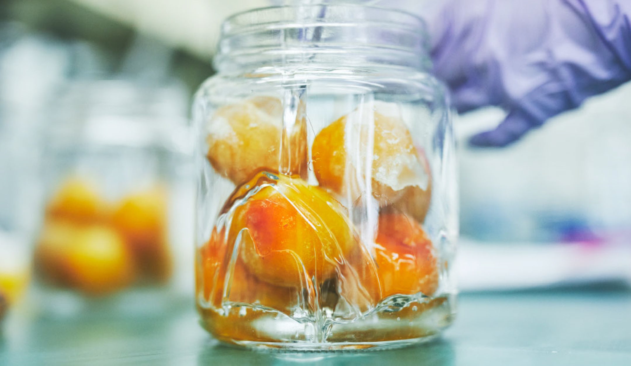 3.抽出方法で繊細な香りを引き出す翠香の香り成分は、熱や酸に非常に敏感です。そんな香りを最大限に引き出すため中野BCでは、梅の入荷当日に漬け込み、社内で追熟処理を実施しました。さらに、減圧蒸留により低温で香りを丁寧に抽出することで、香りそのものをボトルに閉じ込める製法を確立しました。