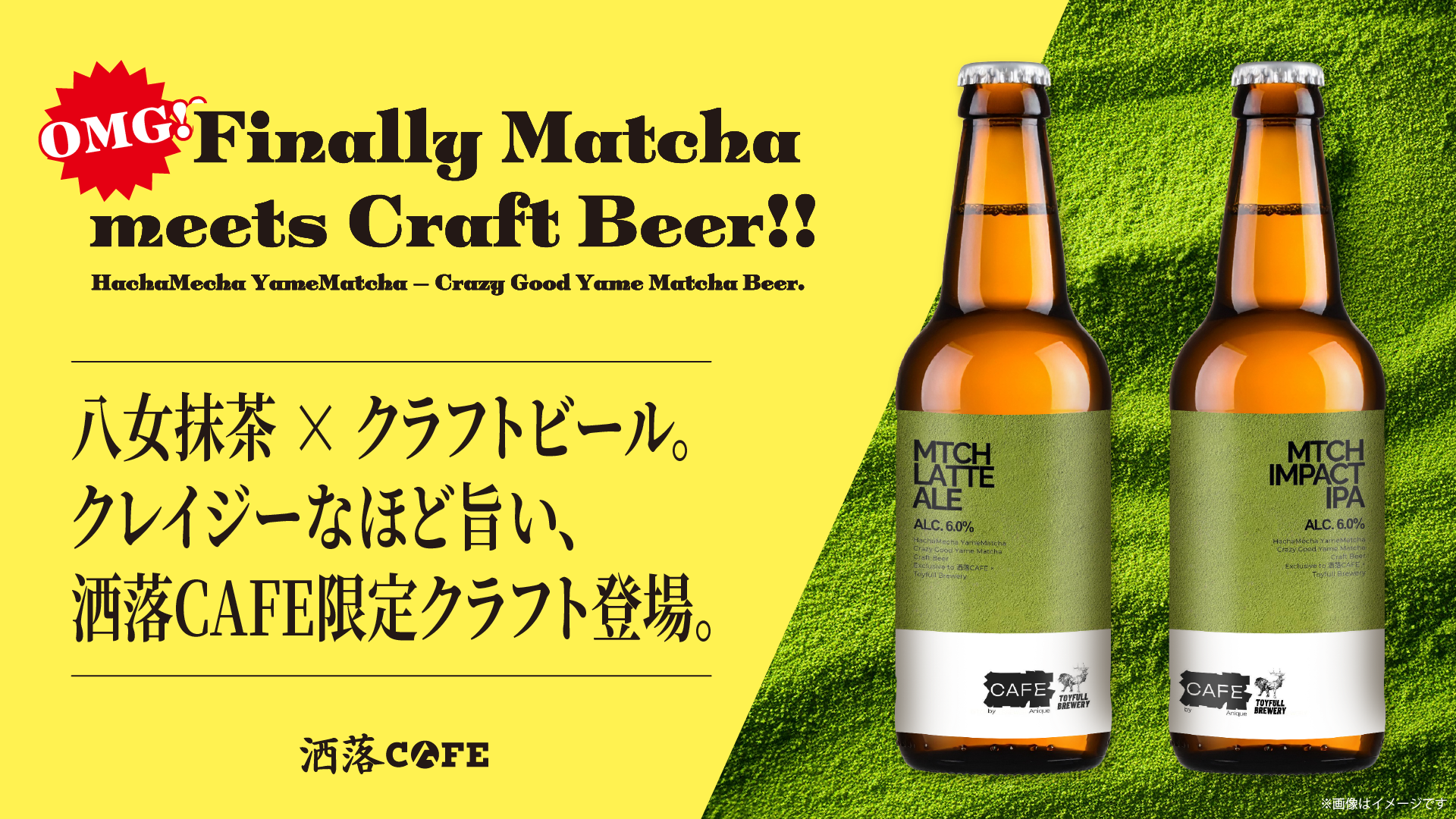 洒落CAFE、完全オリジナル"抹茶クラフトビール"発売。 八女抹茶 × Toyfull Breweryによる HachaMecha 美味しい「MATCHA CRAFT BEER SERIES」登場!