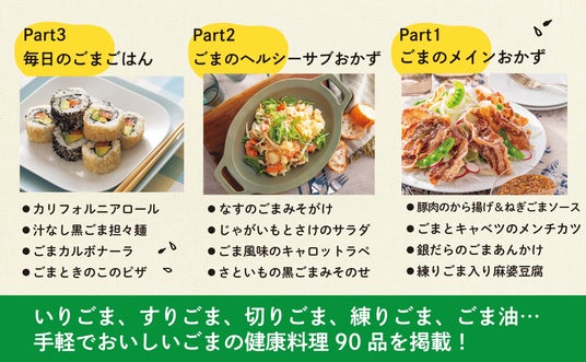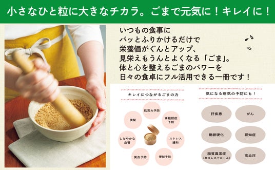 はるか昔から薬膳・漢方・アーユルヴェーダなど、世界各国で"長寿の種"として重宝されてきた「ごま」は、日本人にとっても一番身近なスーパーフードです。そんな「ごま」のパワーをおいしく、手軽に、毎日の食卓で楽しめる本が【11月5日(ごまの日)】に主婦と生活社より発売! いりごま、すりごま、切りごま、練りごま、ごま油…あらゆる「ごま」をフル活用した90品のレシピを掲載しています。