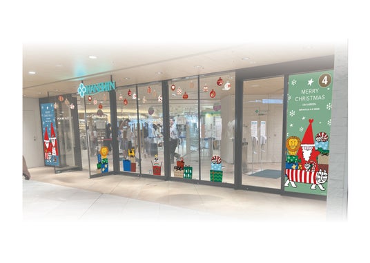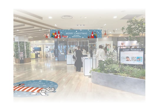 全館デコレーションやウィンドウディスプレイに加え、地下道のイルミネーションでもリサが描いたサンタや仲間たちがクリスマスを盛り上げます。