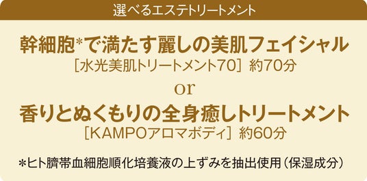 下記のフェイシャルまたはボディコースのいずれか1コースをお選びいただけます。■フェイシャルコース幹細胞*で満たす麗しの美肌フェイシャル