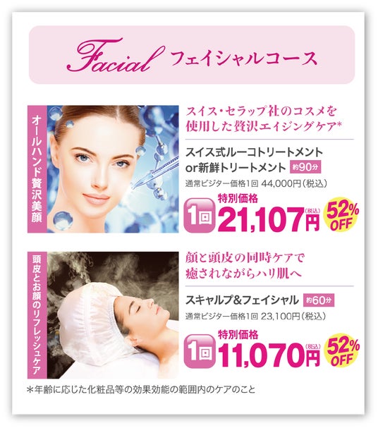 期間中、下記よりお好きなコースをそれぞれ1回ずつ特別価格でご利用いただけます。