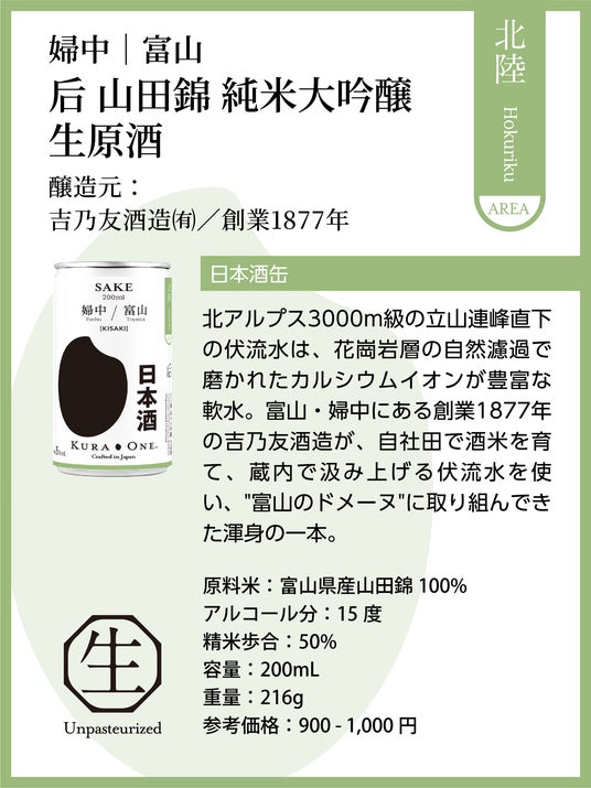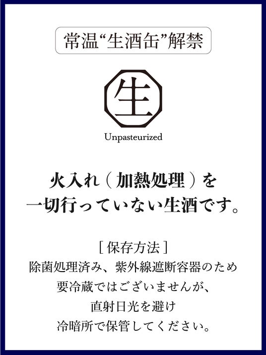 "火入れ"はもちろん、"生"の持つ清冽な香味と米の輪郭を、缶の中で閉じ込め、開けた瞬間に再生する体験を届けます。