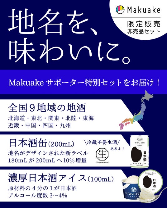 全国9地域の地酒を缶で体験。Makuakeで"濃厚日本酒アイスセットと日本酒缶セット"限定販売、飲食店・宿泊施設向け卸受注も開始。