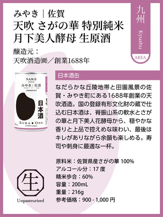 KURA ONE(R)(クラワン)は、全国の蔵元が醸す個性豊かな日本酒を、飲み切りサイズのアルミ缶(高さ9.9cm)でお届けする新感覚の日本酒ブランドです。日本酒に関心があっても手に取りにくい理由--ボトルの重さ・割れやすさ・専門用語の難しさ--を解消。日本酒缶を、酒蔵のある地域と消費者をつなぐコミュニケーションツールとして育てるべく、2023年1月に販売を開始しました。