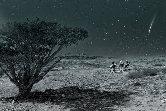 西の空に誰も見たことのない星(ベツレヘムの星)が輝き、東方から三人の賢者が星に導かれ、生まれ出でし救世主を探しに旅立ちました。その時携えていた贈り物が「乳香」「没薬」「黄金」であったと語り継がれています。